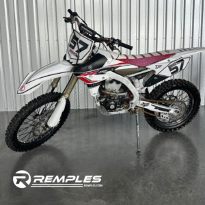 Motor 449 cc, 4 tiempos | Suspensiones KYB | Peso ligero para agilidad en curvas. | Frenos de disco delanteros y traseros | Diseño pensado para motocross profesional. | Caja: 5 velocidades. | Suspensión trasera: Monoshock KYB.